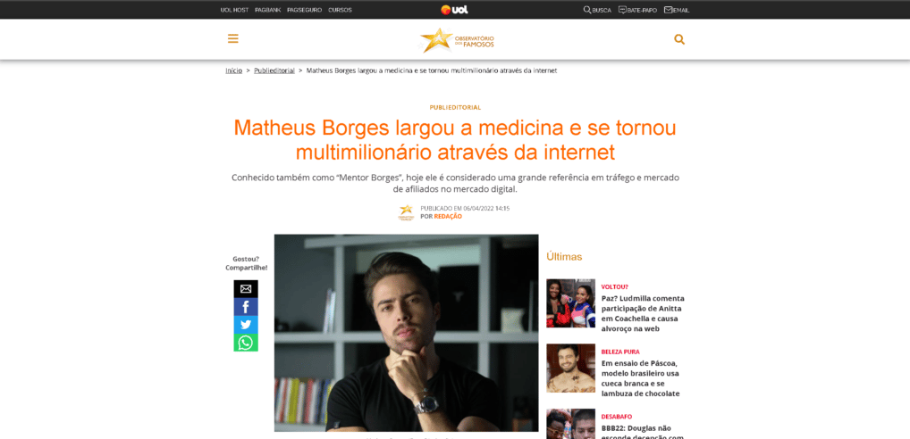 Desde então, após 2 anos nesse mercado, o que era apenas para ser uma renda extra se tornou um negócio multimilionário. Já faturei mais de 10 milhões de reais e pude trazer muitos resultados através das minha estratégias para meus primeiros mentorados. Hoje você está tendo a oportunidade de fazer o mesmo e mudar de vida. Aproveite, antes que seja tarde de mais e você se arrependa.